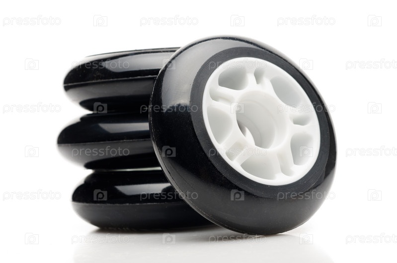 Черные игрушечные колеса на белом фоне