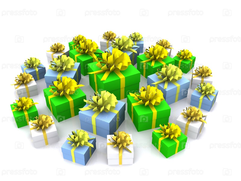 Коробки с подарками на белом фоне