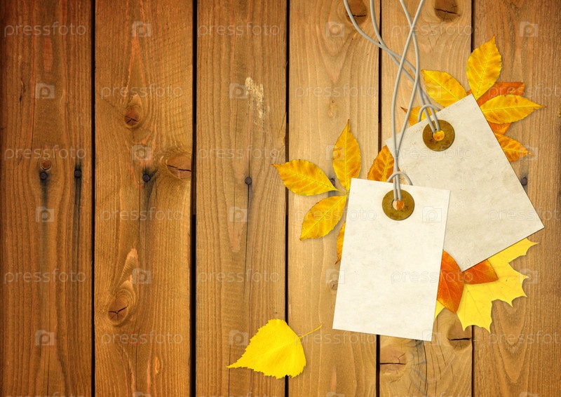 Фон с двумя ярлыками и осенними листьями