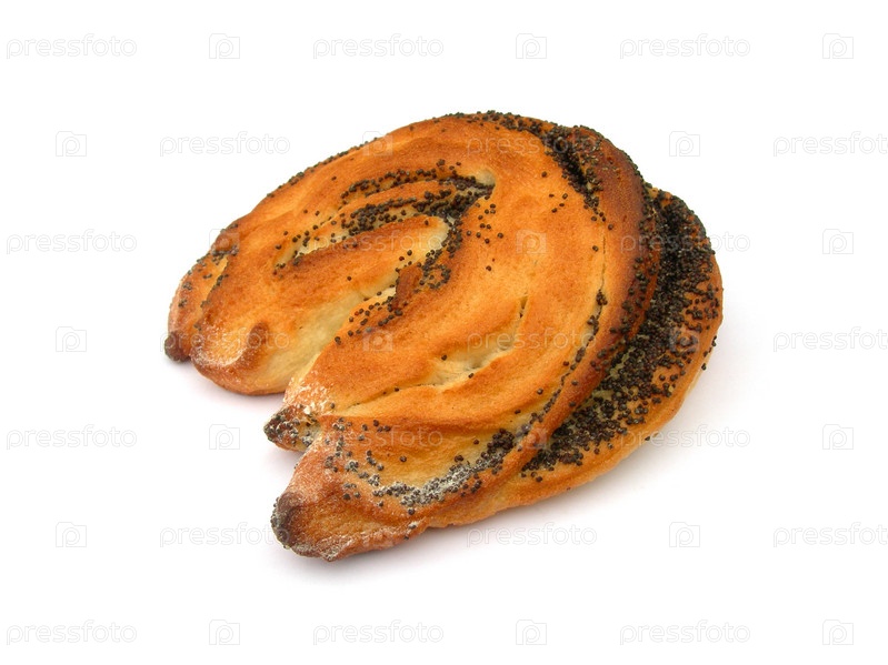 Булочка с маком на белом фоне