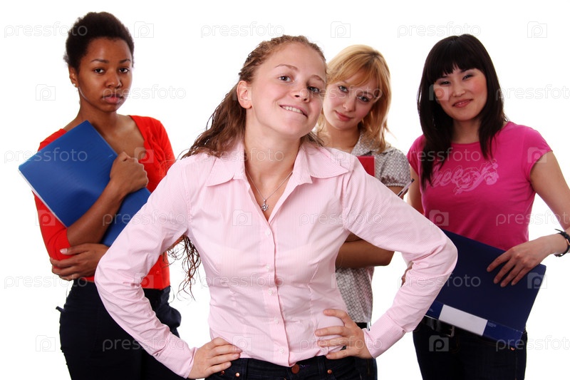 Четыре колоритные девушки на белом фоне
