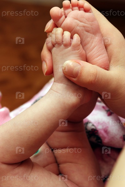 Маленькие детские ножки во взрослой руке