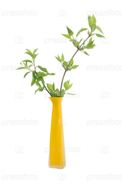 Желтая ваза с зелеными ветками
