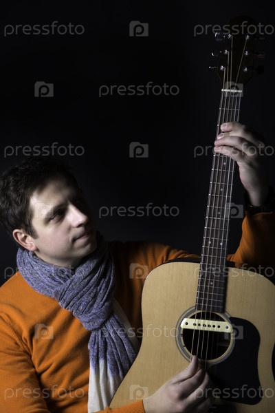 Мужчина позирует с гитарой