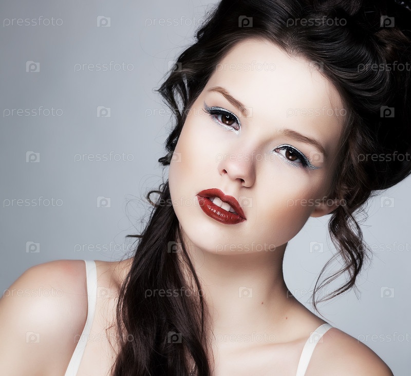 Нежность. Ласковая молодая брюнетка с свежей чистой кожей. Цвет лица