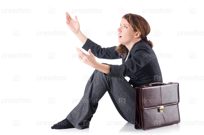Обанкротившаяся деловая женщина, изолированная на белом фоне
