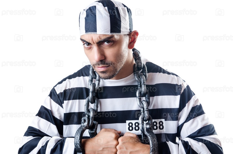 Осужденный преступник в полосатой форме