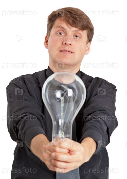 Парень с электрической лампочкой в руке