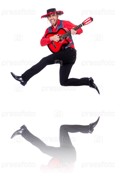 Гитарист, изолированный на белом