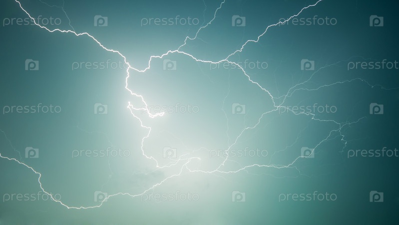 Разряд молнии в небе