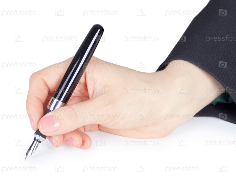 Женская рука держит перьевую ручку