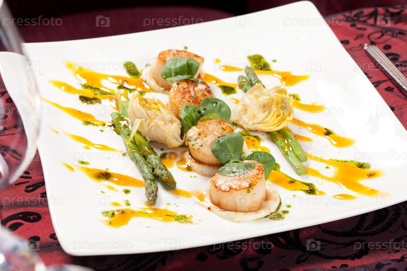 Запеченные гребешки с спаржей
