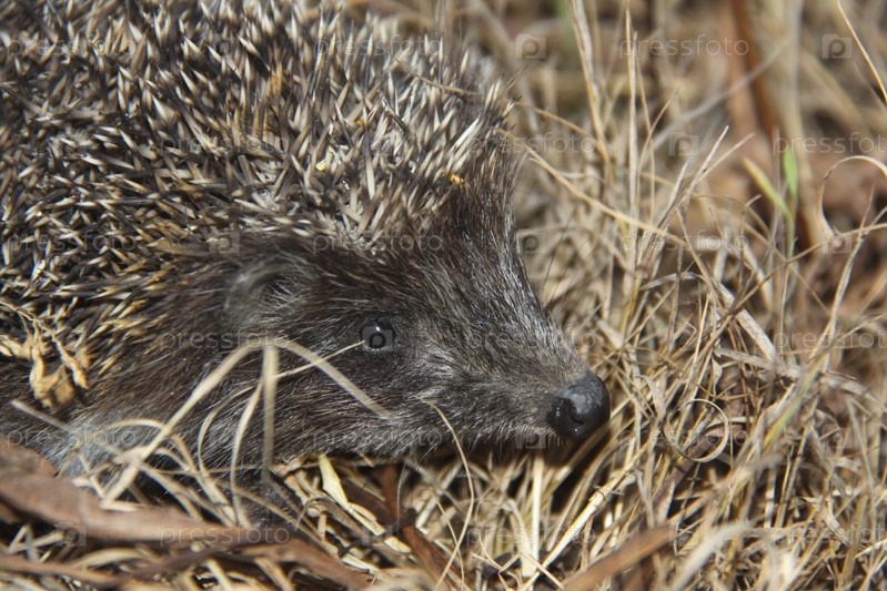 Ежик на сухой траве