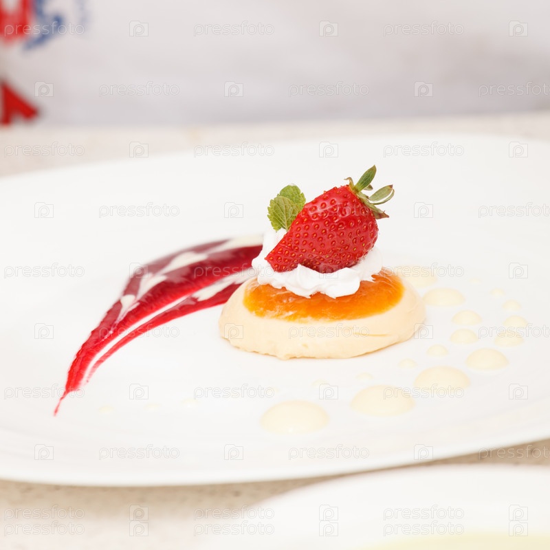 Итальянский десерт панна котта с клубникой