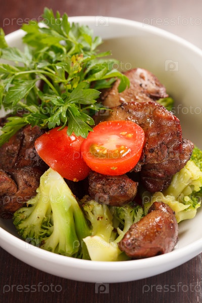 Куриная печень с овощами