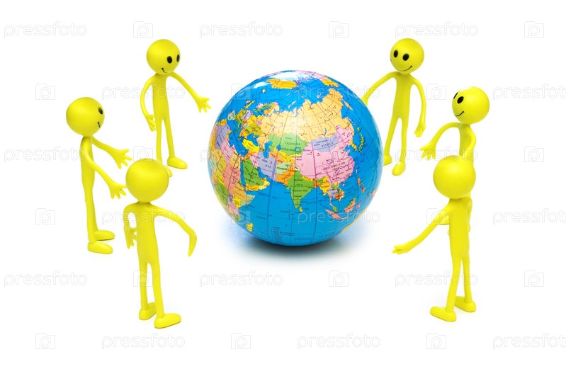 Человечки и глобус на белом фоне