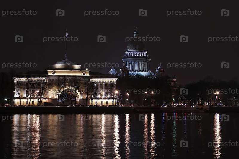 Ночной Петербург. Арка Главного штаба и Исаакиевский собор