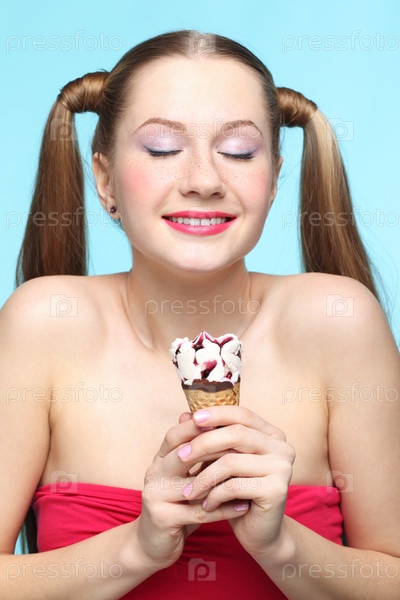 Молодая женщина с мороженым