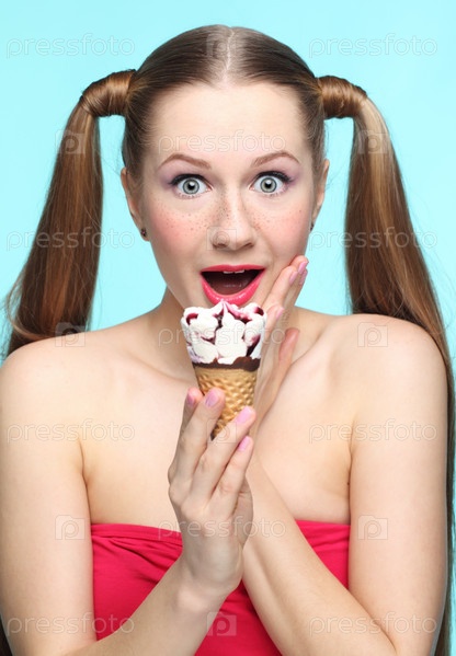 Молодая женщина с мороженым