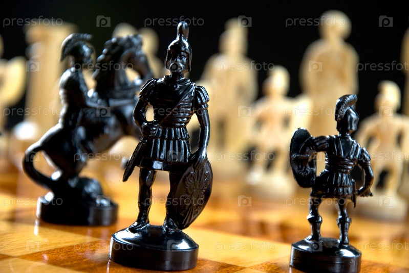 Черные шахматные фигуры крупным планом