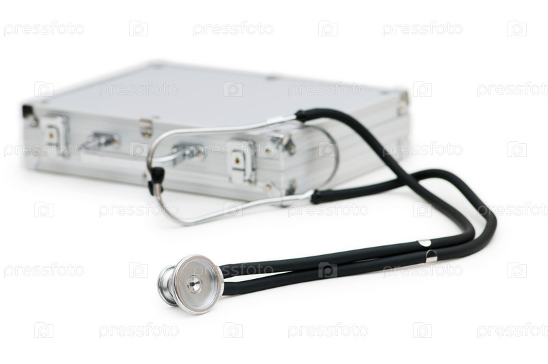 Стетоскоп и корпус изолированы на белом