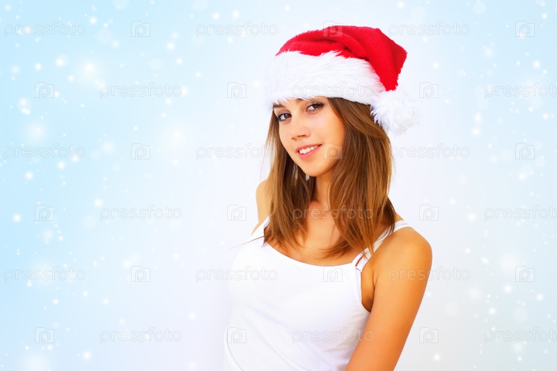 Девушка в шапке Санта-Клауса
