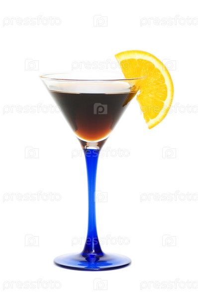 Коктейль с долькой апельсина на белом фоне
