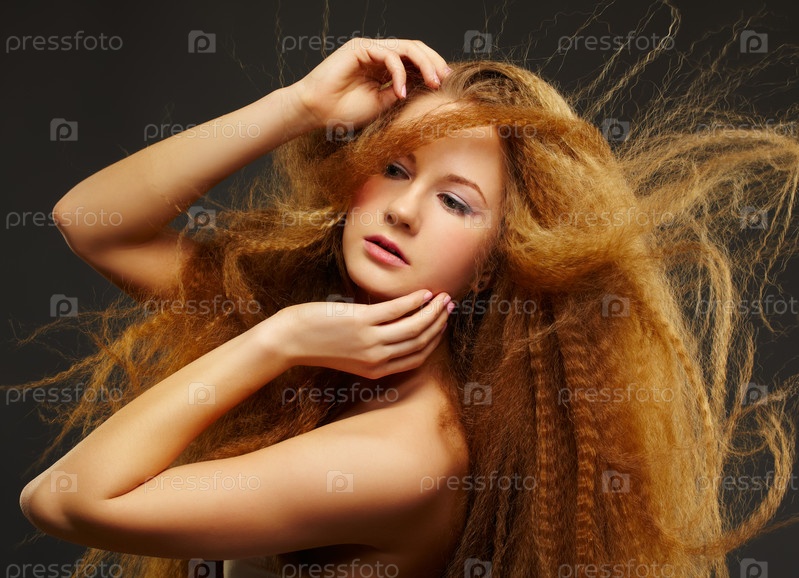 Женщина с рыжими длинными кудрявыми волосами