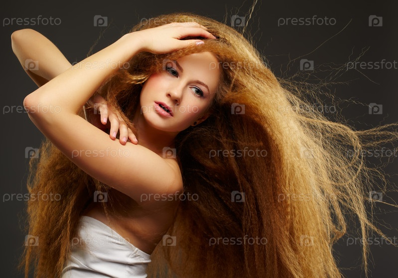 Женщина с рыжими длинными кудрявыми волосами