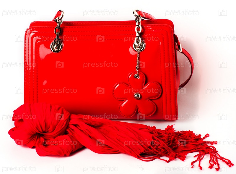 Женские аксессуары: красная сумка и шарф