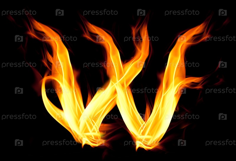 Огненная буква W на черном фоне