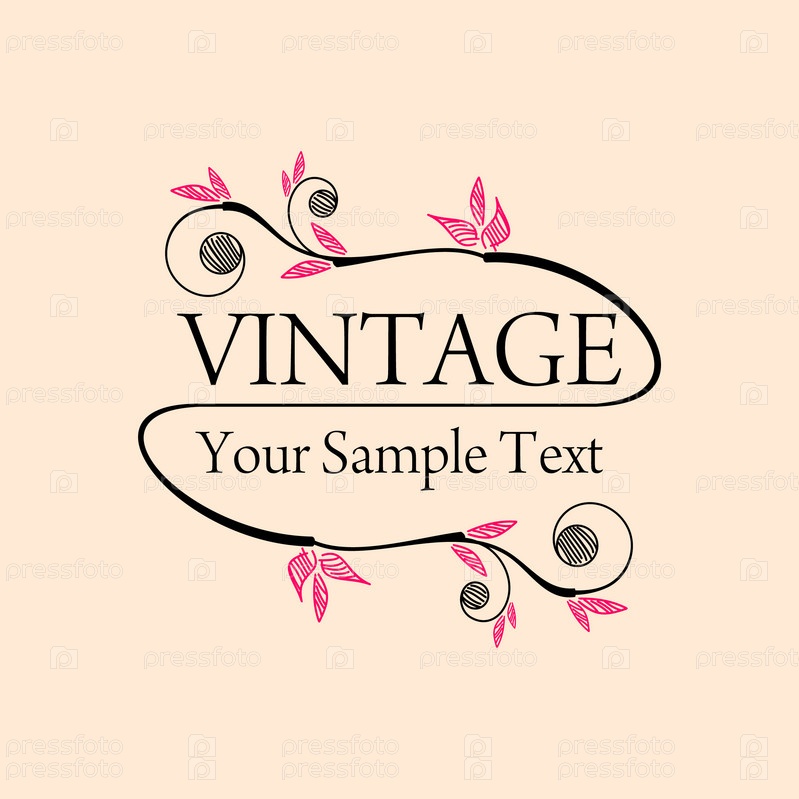 Растительный узор с надписью "Винтаж" на розовом фоне