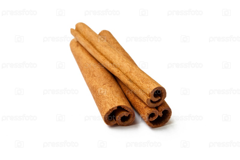 Три палочки корицы на белом фоне