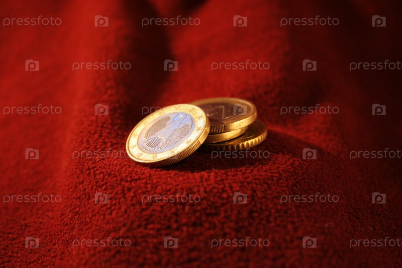 Монеты на красной ткани
