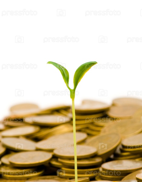 Зеленый рассадник, растущий из кучи монет