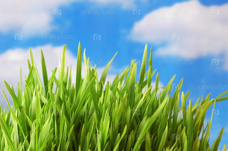 Зеленая трава на фоне голубого неба