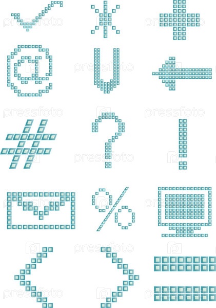 Пиктограммы из голубых пикселей на белом фоне