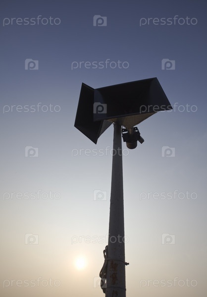 Силуэт мегафона на фоне неба, закат
