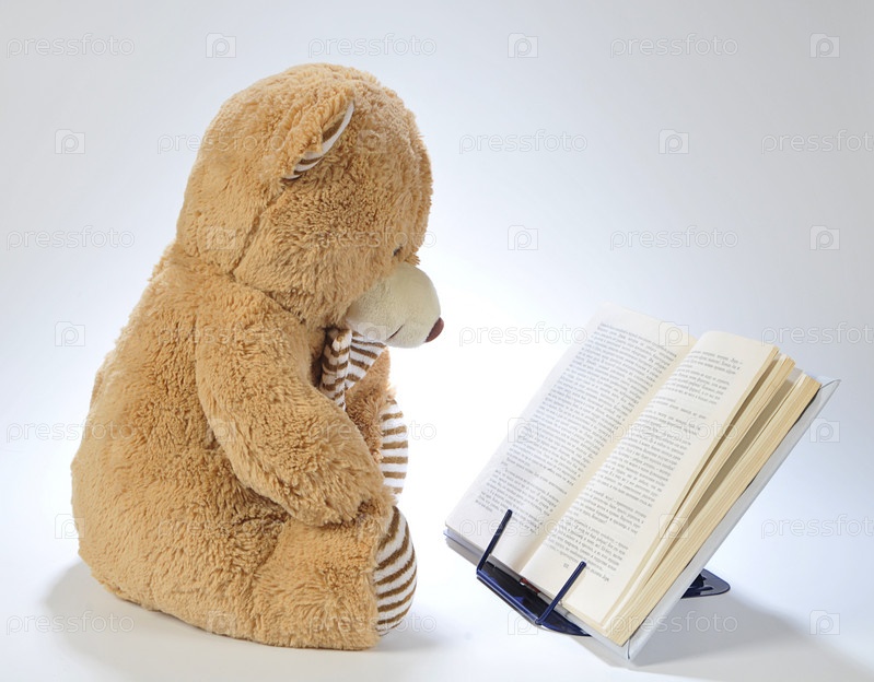 Плюшевый медвежонок читает книгу
