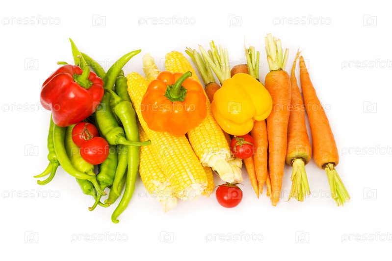 Различные овощи на белом фоне