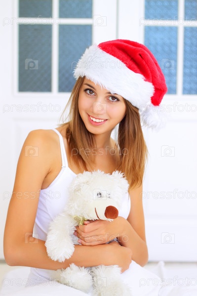 Девушка в колпаке Санта-Клауса