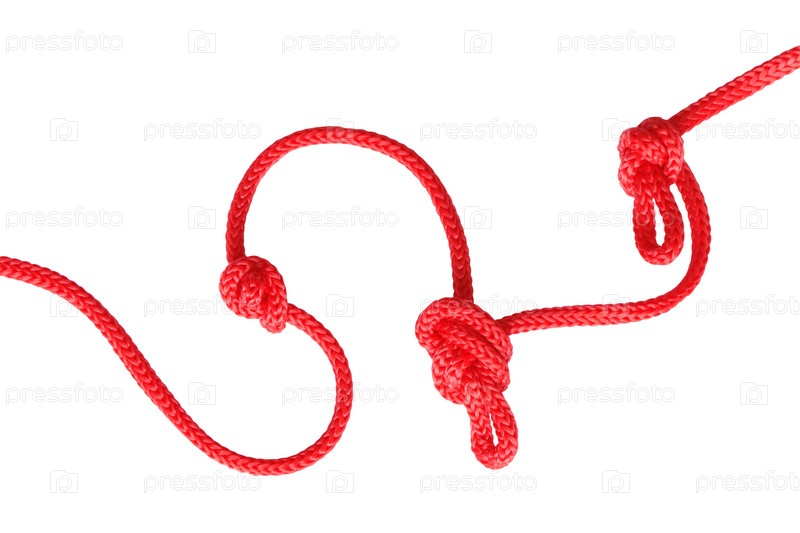 Красная веревка с узлами, изолированная на белом фоне