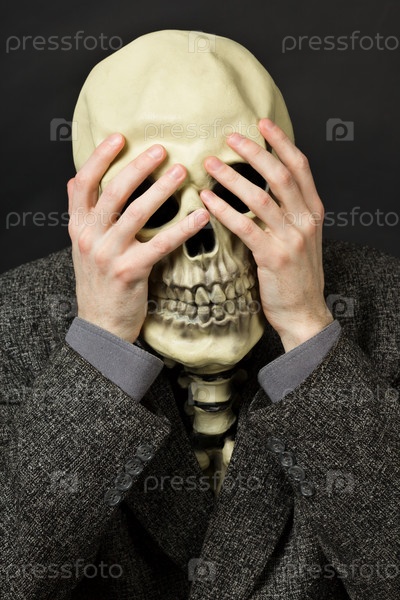 Скелет закрыл лицо руками
