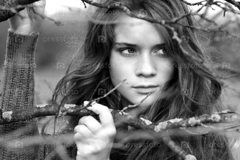 Девушка на фоне веток