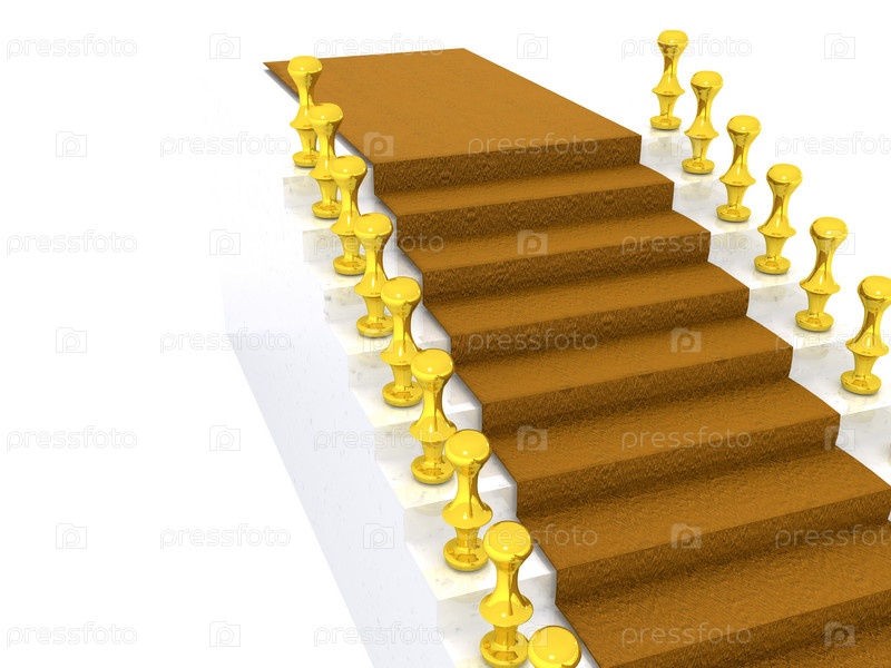 Белая лестница с ковром. 3D