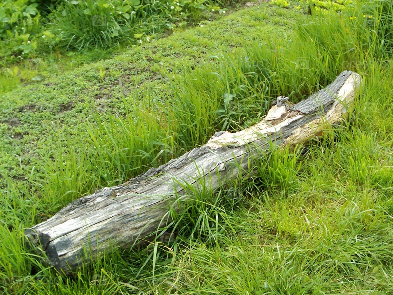 Сухое бревно на траве