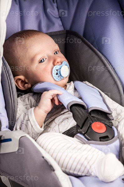 Милый маленький мальчик в автомобильном кресле