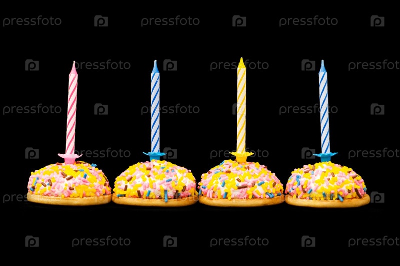 Кексы и свечи изолированы на белом фоне