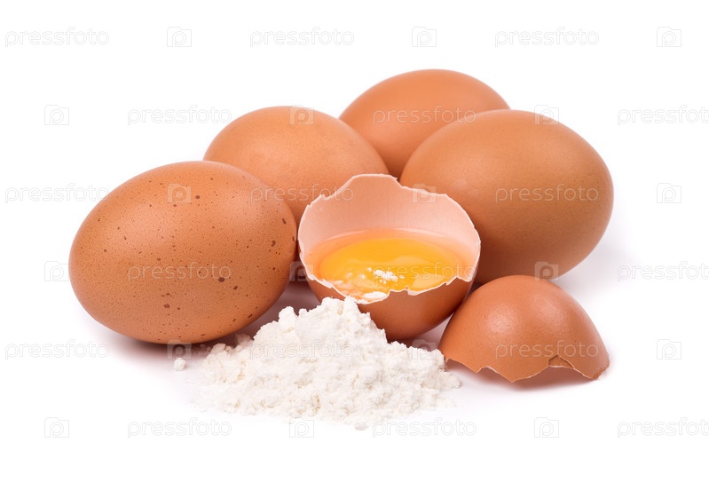 Яйца и мука, изолированные на белом фоне
