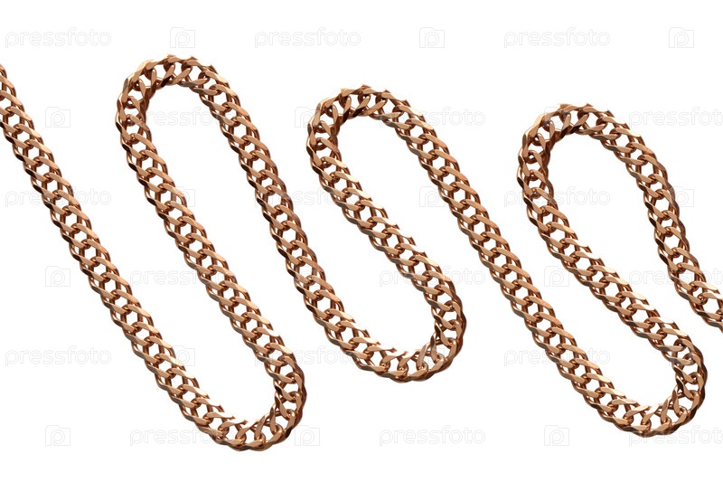 Золотая цепочка на белом фоне крупным планом